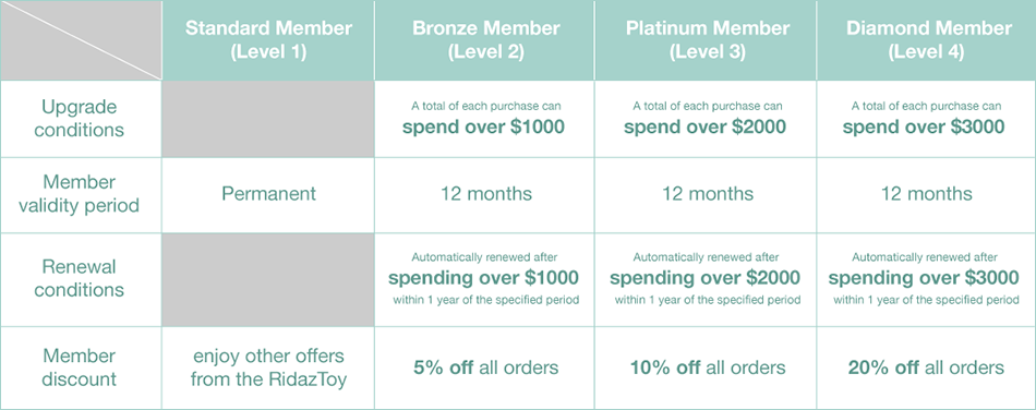 Upgrade conditions: A total of each purchase can spend over $1000 will able to become a Bronze Member